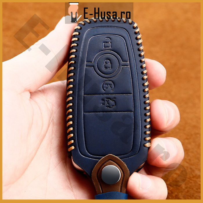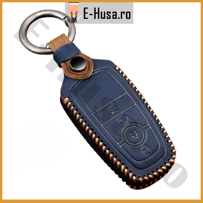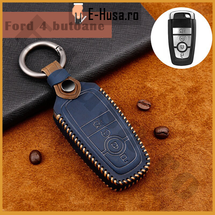 1 recenzie pentru Husa Cheie Auto Ford Mondeo Fusion din piele albastra 4 butoane